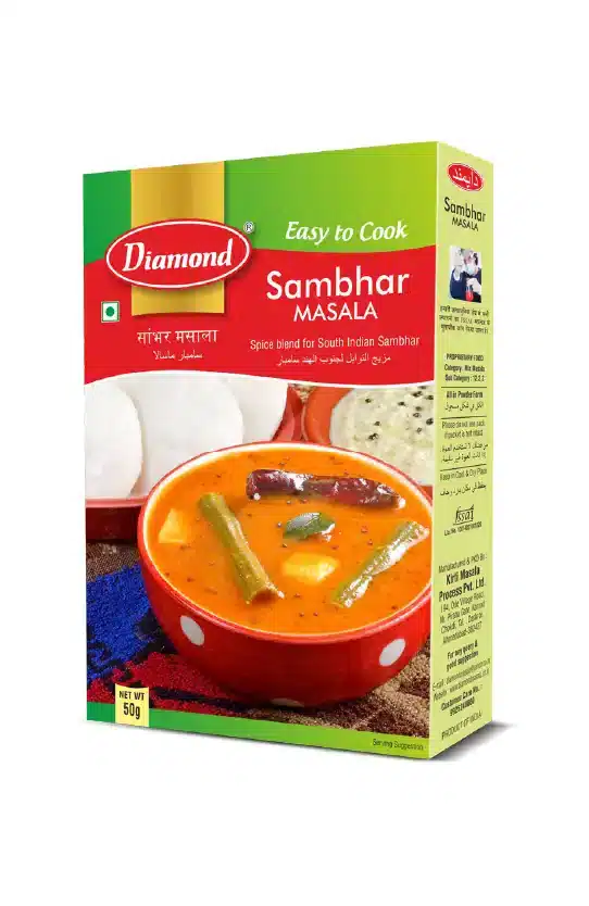 Diamond Sambhar Masala helps you get the perfect, authentic & delicious Sambhar in less time. Use the recipe behind the pack to the the best taste out of Diamond Sambhar Masala